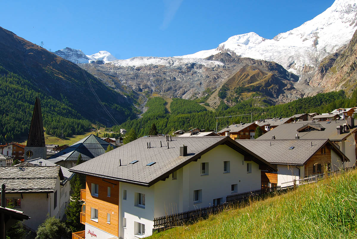 Südbalkon mit freier Sicht auf die imposante Mischabel-Bergkette